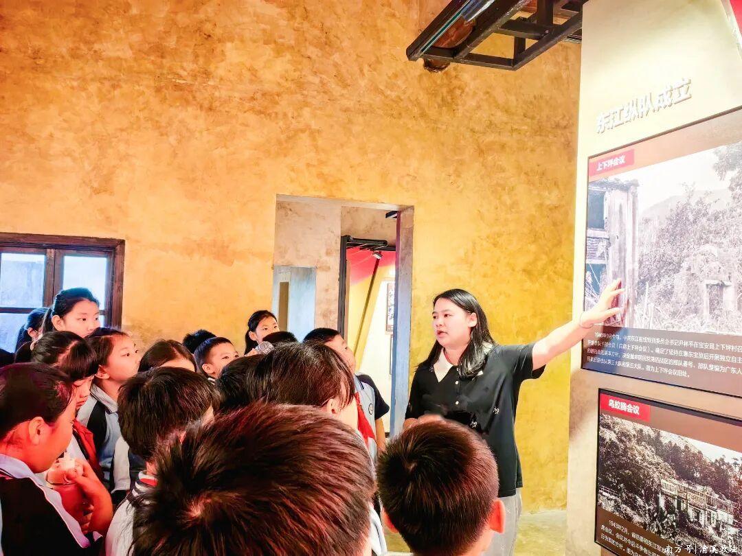在活动现场,土生土长的大队辅导员韩杏娜老师以“本土人讲本土史”的独特视角,将儿时听闻的革命故事与历史史实相融合,为学生们生动讲述东江纵队的抗战历程。她依托旧址内保存的枪械、文献、生活用具等实物展品,将革命先辈在艰苦环境中坚守训练、奋勇抗敌的场景鲜活再现,让红色历史不再是书本上的文字,而是可触摸、可共鸣的生动教材。