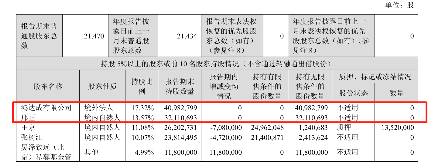 截至2024年末,第一大股东鸿达成有限公司持有4098.28万股公司股份,实际控制人邢正持有3211.07万股公司股份。据上述分红方案计算,鸿达成有限公司获得超5000万元现金分红,邢正获得超4000万元现金分红。